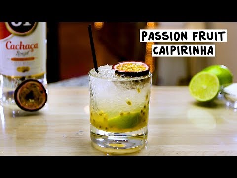 Passion Fruit Caipirinha - Caipirinha Passion - Here's the recipe: PASSION FRUIT CAIPIRINHA 1 1/4 oz. (37.5ml) Cachaca 2 Tbsp Sugar 1 Lime 1 Passion Fruit Crushed Ice Garnish: Passion Fruit ...